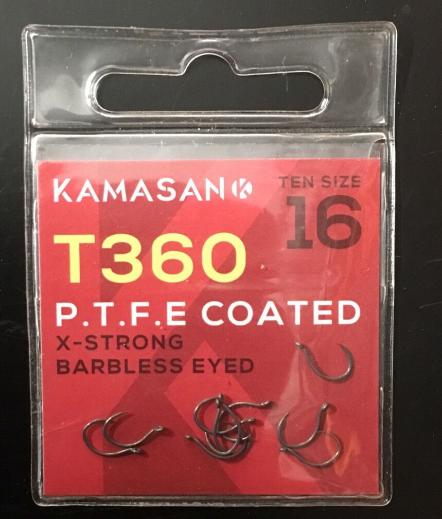Kamasan T360 to kołowy haczyk z krótkim trzonkiem. Wyposażony w powłokę PTFE i kąt nachylenia 30 stopni, który gwarantuje pewne zapięcie haka. Zaprojektowany do łowienia na feeder ale również dobrze sprawdzi się przy spławiku. Niezwykle ostry i idealny do użycia z metodą włosową. Dostępny w rozmiarach 10,12,14,16.