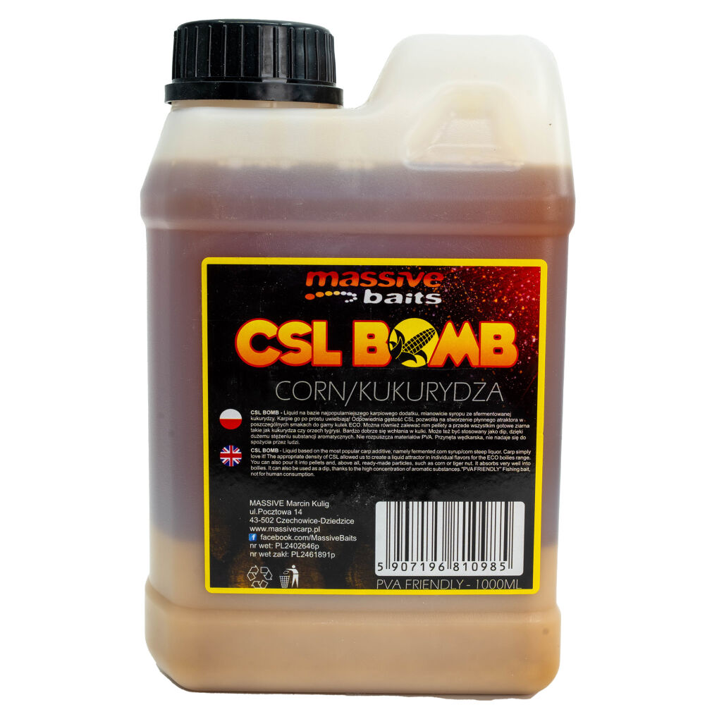 Nasz CSL BOMB to liquid na bazie najpopularniejszego karpiowego dodatku, mianowicie syropu ze sfermentowanej kukurydzy. Karpie go po prostu uwielbiają! Odpowiednia gęstość CSL pozwoliła na stworzenie płynnego atraktora w smakach odpowiednich do gamy kulek ECO. Można również zalewać nim pellety a przede wszystkim gotowe ziarna takie jak kukurydza czy orzech tygrysi. Bardzo dobrze się wchłania w kulki. Może też być stosowany jako dip, dzięki dużemu stężeniu substancji aromatycznych.