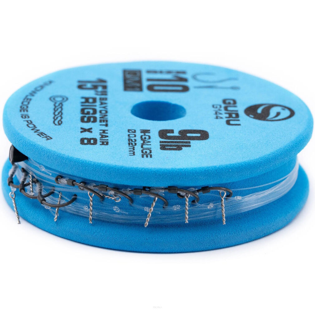- 15 cali (38 cm) – odpowiednie do różnych metod połowu, pakowane na szpulach do przyponów, które idealnie pasują do Guru Rig Boxów, co poprawia organizację i wygodę użytkowania.